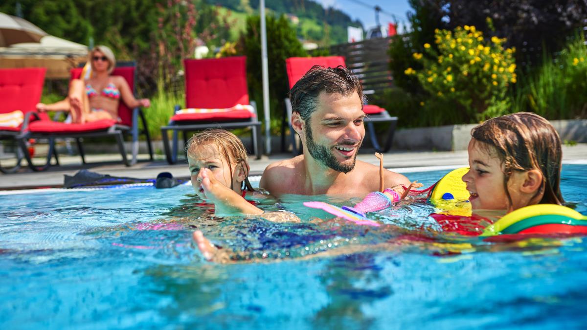 Lieber draußen? Oder lieber drinnen? Zum Spritzen, Plantschen und Toben? Oder um in Ruhe seine Bahnen zu ziehen? Der Lieblings-Pool sieht für jeden anders aus. Und deshalb gibt es bei uns gleich drei davon: den beheizten Außenpool, das Hallenbad mit kleiner Rutsche und für unsere Kleinsten den extrawarmen Babypool. So ist für jeden bestimmt ein Favorit dabei.